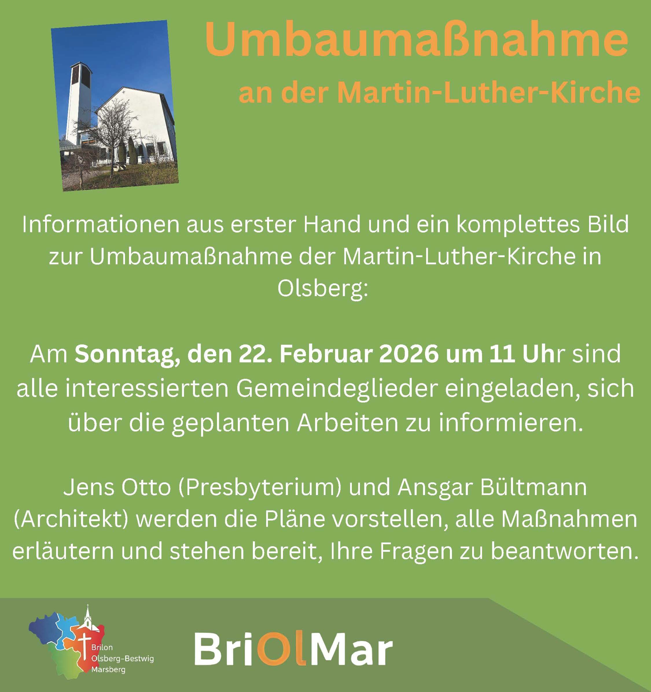 Bitte melde Dich im Gemeindebüro unter 02962 7114591 oder unter ev.kircheolsberg@gmail.com bis zum 12.02.2026 an.