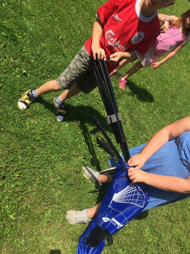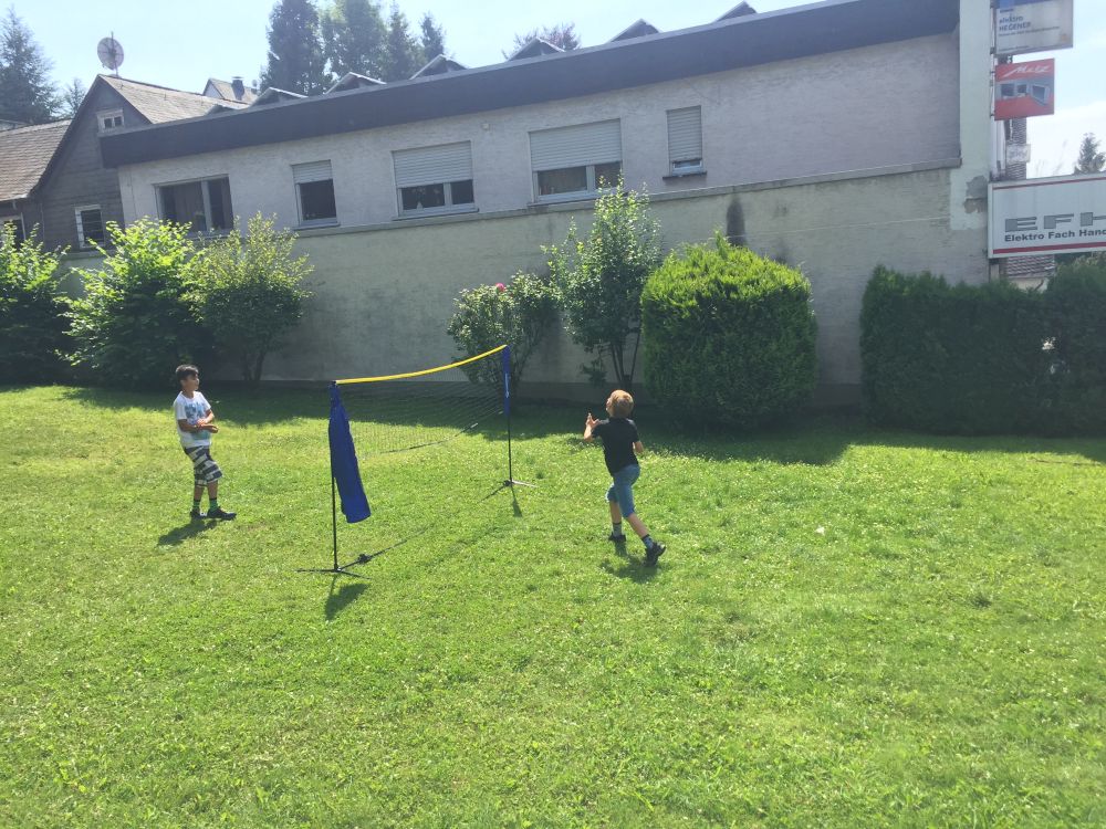 Mit einem Badmintonnetz, Federballschläger und einem Schwungtuch werden die Kinder viel Spaß haben.