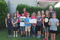 Strahlend nahmen die Kinder den großen Scheck von Pfarrer Frank Mönnig (rechts) entgegen. Von dem Geld sollen neue Spielgeräte für den Treff gekauft werden. Die Leiterin Silke Wippermann bedankte sich im Namen des gesamten pädagogischen Teams für die Spende.