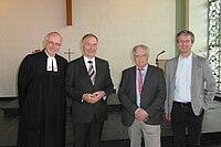 Im Festgottesdienst selbst wurde Luther durch eine Spielszene lebendig. Er trat vor dem Wormser Reichstag auf und wehrte sich dagegen, zu widerrufen. Anschließend predigten die vier Pfarrer unserer Gemeinde. Sie legten die Symbolik des neuen Fensters aus. Superintendent Alfred Hammer sprach ein Grußwort und verwies darauf, dass wir Menschen geistliche Orte, wie in Olsberg, brauchen, um Gott nahe zu kommen.