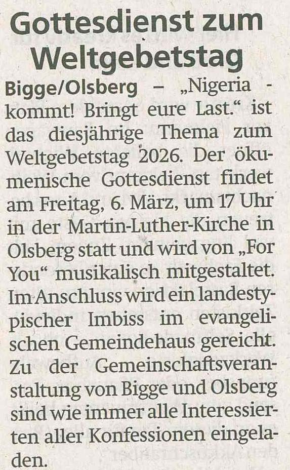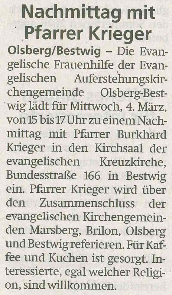 über unsere Kirchengemeinde aus der Westfalenpost, der Westfälische Rundschau, dem Sauerlandkurier und der UK