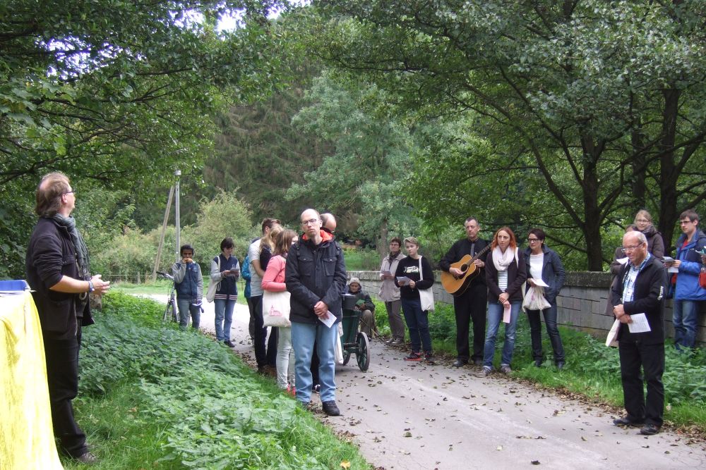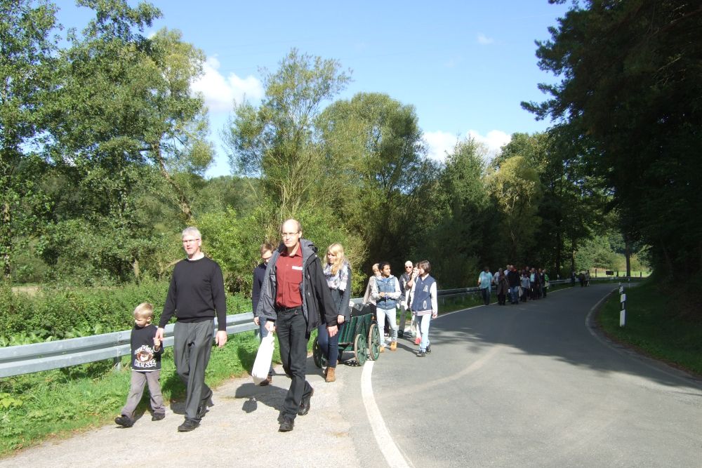 Zu einem „Gottesdienst auf dem Weg“ fanden sich am 27. 09.2015 ca. 40 evangelische Christen in der Erlöserkirche in Westheim ein. Sie kamen aus den Kirchengemeinden unserer östlichen Region, Brilon, Marsberg, Medebach und Olsberg-Bestwig. Zusammen wanderten wir von der Erlöserkirche Westheim zur Emmauskirche in Marsberg.